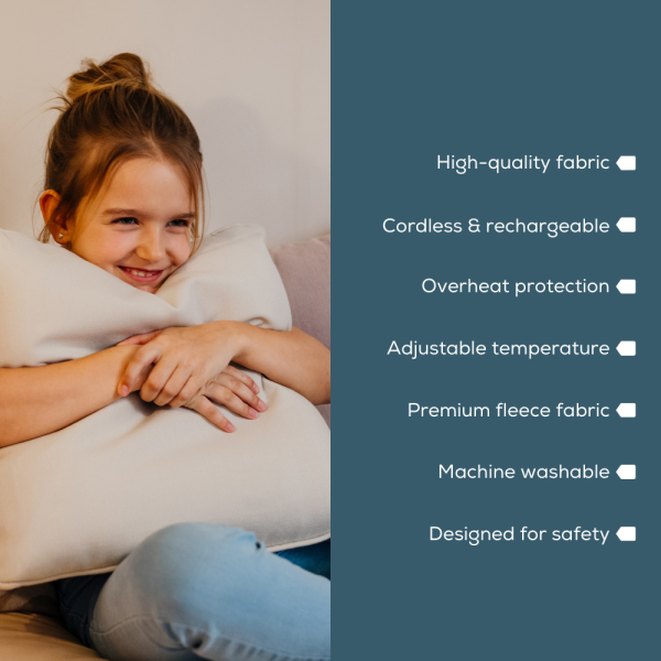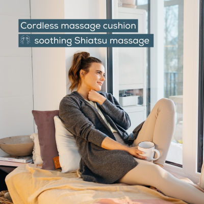 The cordless Beurer MG 139 Massage Cushion provides a real Shiatsu massage experience with its 4 rotating massage heads. You can optionally switch on the heat function using the label on the side, and thanks to the lithium-ion battery, you can use the heat massage cushion for up to 2 hours wherever you like. The cover is removable and washable at 30ï¾°C for a longer service life and improved hygiene.