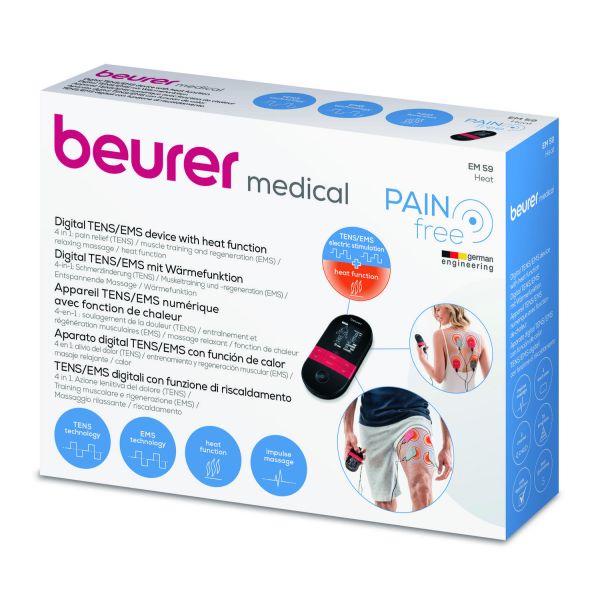 This digital TENS/EMS device is the perfect choice for pain therapy or muscle stimulation! The optional heat function also means it is suitable for relaxation and massage.