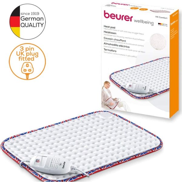 The HK "Union Jack" heating pad from Beurer quickly provides soothing warmth on cold days. Thanks to the three temperature levels, the pleasant warmth can be optimally adapted to your own needs. Whether for the lap, buttocks, back or stomach ï¾– the HK "Union Jack" heat pad can be used in a variety of ways. For your protection, the heat pad switches off automatically after 90 minutes.