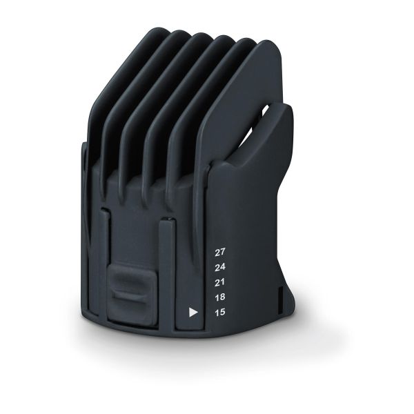 • 10 different cutting lengths due to 2 length-adjustable comb attachments: 1-12 mm and 15-27 mm