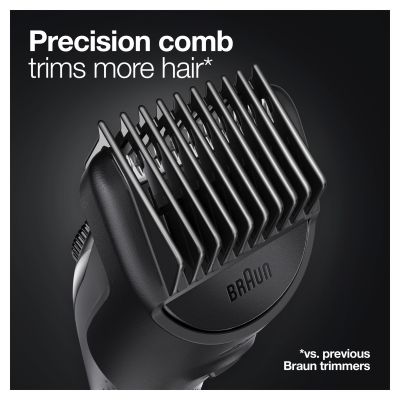 • 100% precision and control: a precision comb with 20% less plastics (vs. previous Braun trimmers) provides an effortless trim