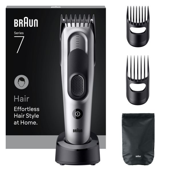 Easily achieve your hair style from home with the Braun Hair Clippers. The Lifetime Sharp Blades make hair trimming easy at any length or thickness. With 2 combs, 17 length settings and Memory Lock to secure your last setting. Has a powerful Ni-MH battery, 50-minute runtime and washable design. Makes a great gift for men.Box content: Braun hair clipper, 2 combs (3-24 mm, 14-35 mm), 1 charging stand, 1 pouch, 1 cleaning brush