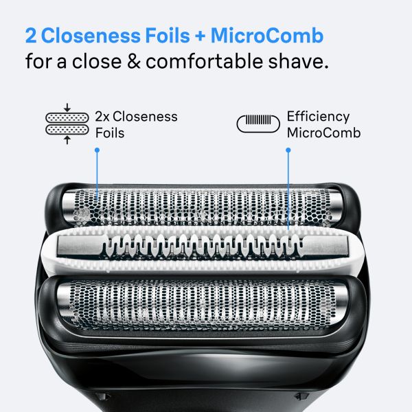 • Efficiency MicroComb: A specialized comb captures more hair in each stroke, for a faster and gentler shave (vs. Braun Series 3. Tested on 3-day beard)