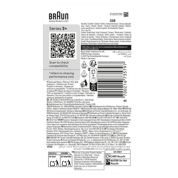 The average Braun shaver cuts 6 million hairs every 18 months. This means the head will gradually wear out and your shave can become less close and comfortable. That's why Braun recommends changing your shaver's foil & cutter block every 18 months to get your shaver back to its best. Take care of your shaver, and it will take care of you. Box includes: 1 X ORIGINAL Shaver Head Replacement