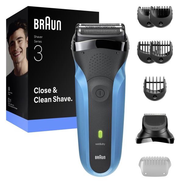 This Braun Wet & Dry electric razor and beard trimmer is designed to shave, trim and edge. With 3 flexible blades that adapt to your contours, it provides maximum skin contact even in tricky areas. The five beard trimmer combs can trim beards and stubbles (1-7mm) and the beard trimmer head creates precise edges for sideburns and moustache. Box includes: 1 x Electric shaver 1 x Trimmer head, 5 Combs: 1, 2, 3, 5, 7 mm 1 x Protective cap 1 x Cleaning brush 1 x SmartPlug