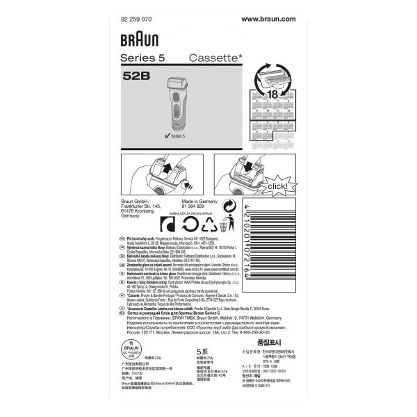 Within 18 months, your Braun shaver will cut an average of 6,000,000 hairs. In accomplishing this substantial task, the cutting parts will gradually wear out and your shave may become less close and comfortable. That's why Braun recommends changing your shaver's foil & cutter block every 18 months to maintain your shaver's maximum performance. For an efficient shave every day.