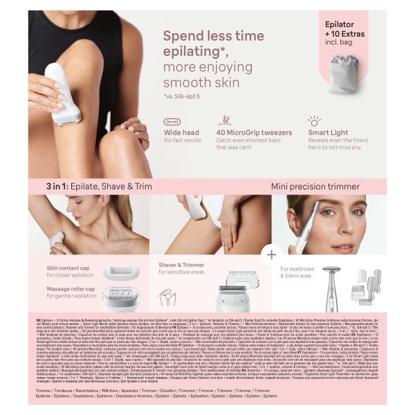 • More than an epilator: includes bikini trimmer, lady shaver head and trimmer comb for sensitive areas.
