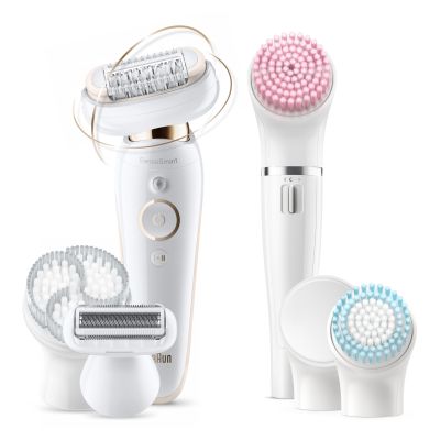 The Braun Silk-�pil 9 Flex 9-100 beauty set is the world�s 1st epilator for women with a fully flexible head, for effortless hair removal. Enjoy weeks of salon-smooth skin thanks to Micro-Grip technology, and the 40% wider head that removes even the shortest hairs, down to 0.5mm. The beauty set includes additional attachments so you can shave, trim, cleanse and exfoliate, plus FaceSpa with facial brush for sensitive skin, and a beauty sponge to massage cream into the skin. Box includes:1 X Epilator 1 X Shaver Head 1 X Trimmer Head 1 X Skin Contact Cap 1 X Face Precision Cap 1 X Body Exfoliation Brush 1 X Braun FaceSpa 1 X FaceSpa Sensitive Brush 1 X FaceSpa Beauty Sponge 1 X FaceSpa Cleansing Brush 1 X FaceSpa Exfoliation Brush 1 X Pouch 1 X Cleaning Brush 1 X Charger 1 X AA Battery
