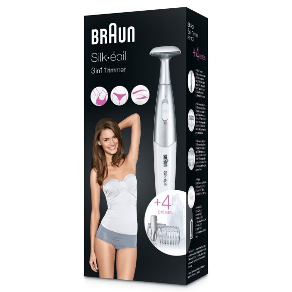 The Braun Silk-�pil Bikini Styler FG1100 is a great tool for safe bikini trimming at home. 3 attachments allow you to create styles at 2 different length settings. Rounded styler tips protect your skin from nicks and cuts.