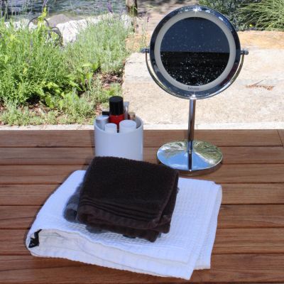 Deluxe cosmetics mirror -ï¾ the bright LED light can be continuously dimmed with the touch sensor, and thanks to the 7x magnification, you can see every last detail.