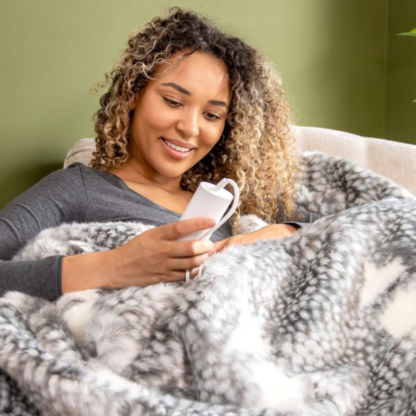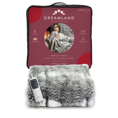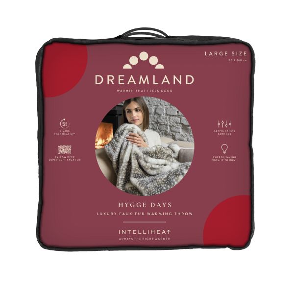 Dreamlandï¾’s fashionable Hygge Days Fallow Deer Print faux fur heated throw is a gorgeous accessory to add to your living room or bedroom, and looks fabulous draped over you or your bed. It is the most luxurious way to snuggle up and watch tv. Keeping you warm and cosy on chilly nights, imagine the warmth around you from being cocooned in super soft strokeable faux fur. The reverse fabric is in a beautiful soft grey micromink fabric. So turn down your heating and stay warm in style.
