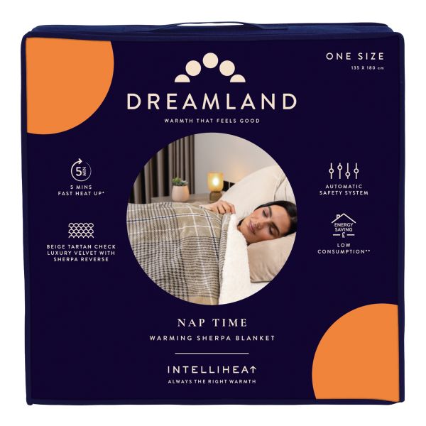 Wrap yourself in the warmth and comfort of Dreamlandï¾’s Nap Time Warming Sherpa Blanket. Imagine the feeling of sinking into a bed thatï¾’s perfectly warm, with a plush velvet touch and ultra-soft sherpa fleece embracing you like a gentle hug. No more cold nights or heavy layersï¾—just pure, luxurious warmth that adjusts to your needs as you sleep. And with a quick 5-minute pre-heat, your sofa and your bed are always ready to welcome you. Easy to care for, this blanket will keep you feeling cozy and loved all winter long.