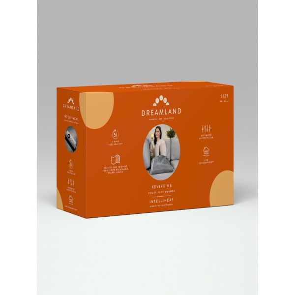 Relieve cold feet and take control of your wellbeing at the touch of a button. Designed from plush, velvety fabric with a breathable sherpa lining for maximum comfort. This foot warmer has been ergonomically designed for easy use and ultimate warmth and relaxation. It has a non-slip underside and is versatile to use around the home, whether under the desk while working or relaxing on the sofa at the end of a busy day. Large size 48 x 50 cm and washable cover. 5 minute fast heat up, 5 temperature settings and 3 hour auto shut off timer