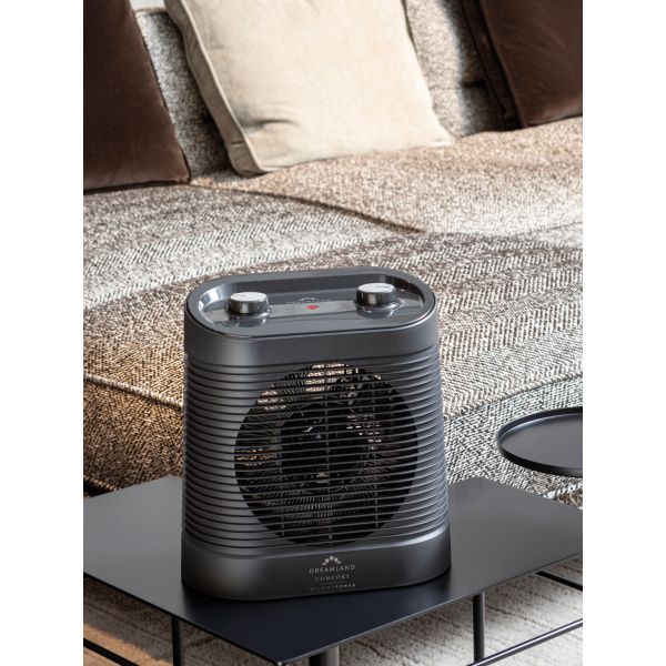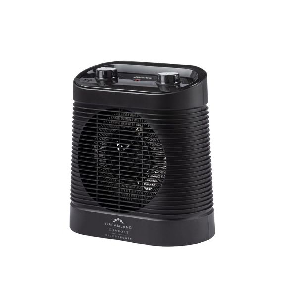 Experience the ultimate on-the-go heating method with Dreamlandï¾’s Silent Power Comfort portable fan heater. Designed for practicality and convenience, the portable fan heater has a sleek build and an integrated carry handle, making it easy to carry and store. With 4 functions and 10 heat levels, you can effortlessly control the amount of heat you need. Choose from four versatile functions - warm air, hot air, rapid heating and cool air - to enjoy ideal and comfortable warmth at any time. With a powerful 2100 W capacity, even large spaces are quickly and effectively heated, ensuring you stay cosy and content throughout the seasons.Compact and powerful, the Silent Power Comfort excels at rapidly heating even large rooms, providing an immediate and delightful sensation of enveloping warmth that promotes relaxation. It distributes heat evenly and can be effortlessly transported to any location you desire.