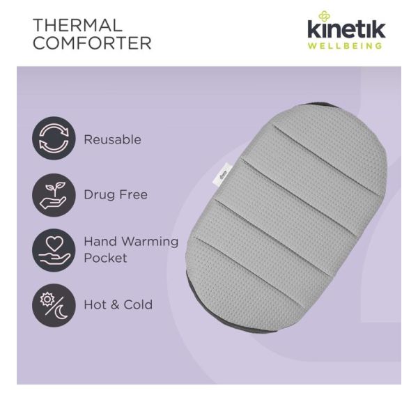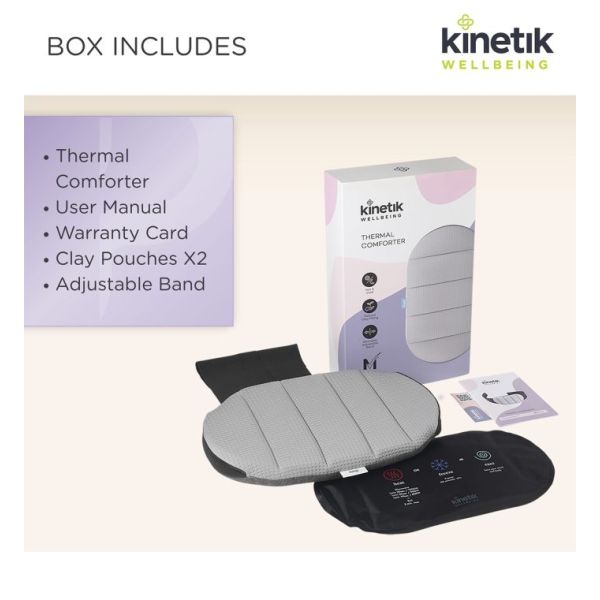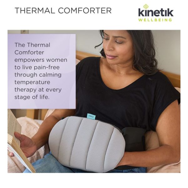 The Thermal Comforter empowers women to live pain-free through calming temperature therapy at every stage of life. Designed with soft, soothing fabric and an adjustable support band, it offers a secure fit for long-lasting, drug free reliefï¾— whenever and wherever you need it. It comes with two natural clay pouches that can be easily heated or frozen, giving you the flexibility to choose the temperature therapy that suits your needs.