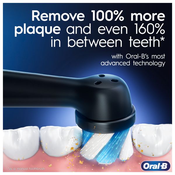 • FOR HEALTHIERUMS IN JUST 1 WEEK with ORAL-B'S MOST ADVANCED TECHNOLOGY: Removes 100% more plaque and up to 160% in between teeth (vs. a manual toothbrush)