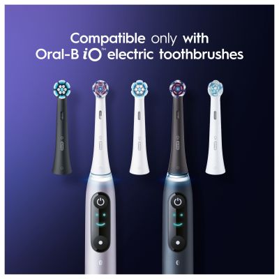 • Oral-B iO brush heads are exclusively designed to fit Oral-B iO toothbrushes