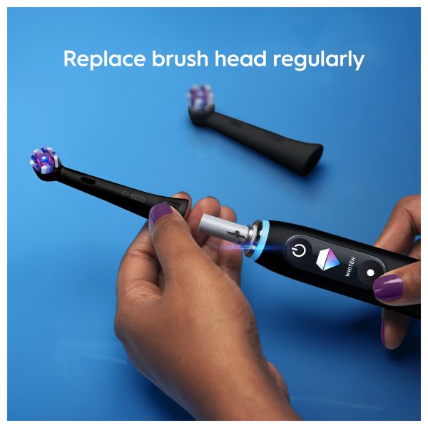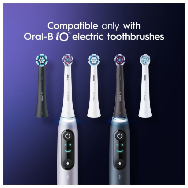 • The iO Technology combines Oral-B's iconic round brush heads with theentle micro-vibrations of iO toothbrush for Oral-B's best cleaning performance