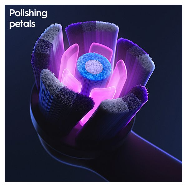 • Oral-B iO Radiant White combines perfectly angled bristles with polishing petals for advanced cleaning and whiter teeth