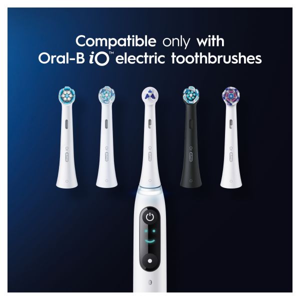 • Oral-B iO replacement toothbrush heads are exclusively designed to fit Oral-B iO toothbrushes