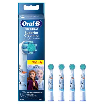 The Oral-B Kids 3+ electric replacement toothbrush headsive kids the fun of Disney Frozen with theentle, effective clean of a dentists-recommended Oral-B toothbrush. The extra soft bristles and small round head are specifically designed for kids and they are compatible with all the Oral-B Kids electric toothbrushes.<\p>