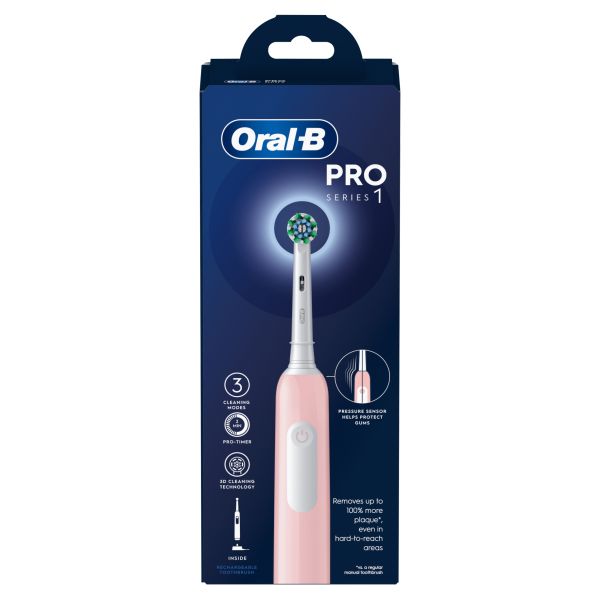 Experience Oral-B Pro Series 1 from the #1 brand used by dentists worldwide. The Series 1 electric toothbrush helps you brush like your dentist recommends for 2 minutes with the professional timer and it notifies you every 30 seconds to change the area your are brushing. While you are just moving the brush around your mouth, Oral-B's unique round head does all the rest. It removes up to 100% more plaque than a standard manual toothbrush for healthierums, and it starts making your smile whiter as of the first day of brushing by removing surface stains. With the professional timer Oral-B Pro Series 1 is areat toothbrush for everyone who wants to switch to an electric toothbrush.<\p>