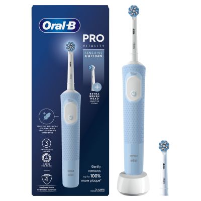 The Oral-B Vitality Pro rechargeable electric toothbrush provides a clinically proven superior clean vs. a regular manual toothbrush. The toothbrush comes 3 brushing modes: daily clean, sensitive and sensitive plus mode for an amazinglyentle experience. An in-handle timer helps you brush for a dentists-recommended 2 minutes. Best of all it's brought to you by Oral-B - the #1 brand used by dentists worldwide.<\p>