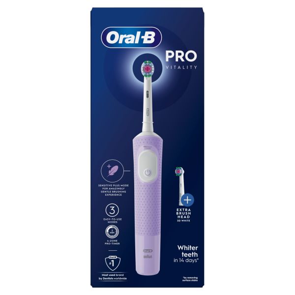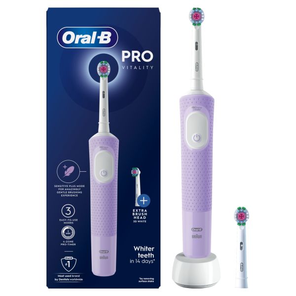 The Oral-B Vitality Pro rechargeable electric toothbrush provides a clinically proven superior clean vs. a regular manual toothbrush. The toothbrush comes 3 brushing modes: daily clean, sensitive and sensitive plus mode for an amazinglyentle experience. An in-handle timer helps you brush for a dentists-recommended 2 minutes. Best of all it's brought to you by Oral-B - the #1 brand used by dentists worldwide.<\p>