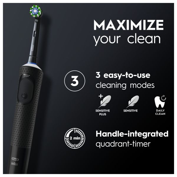 • MAXIMIZE CLEANING performance with 3 EASY-TO-USE CLEANING MODES + handle-integrated quadrant-timer to brush as dentists recommend