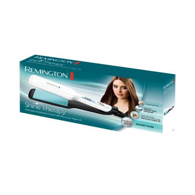 Treat your hair to some therapy with the Remington Shine Therapy Wide Plate Straightener that delivers beautifully sleek, shiny looking locks with every stroke. Advanced Ceramic coated wide plates infused with Moroccan Argan Oil, this super Straightener will leave your hair with a beautiful finish and incredible shine. With 10 heat settings from 150ï¾°C up to an impressive 235ï¾°C you can be in complete control of your styling. If your hair is coloured, bleached or you have fine hair, select a lower heat setting. For normal hair, opt for a mid-range temperature. And for those with coarse, thick or curly hair, turn up the heat to the maximum heat setting. The Shine Therapy Wide Plate Straightener boasts wide plates to ensure even pressure and maximum width distribution with every silky stroke.
