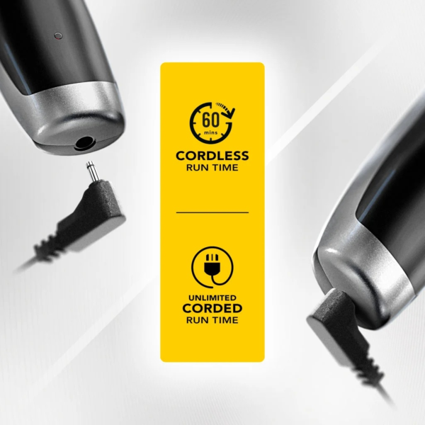 • Designed for cordless use, this rechargeable Wahl Cord / Cordless Clipper enables maximum manoeuvrability for a great performance. The clipper features high carbon steel blades that are precision ground to stay sharper for longer. The blades are also rinseable and removable for thorough cleaning, so you can maintain the clipperï¾’s performance all year round.