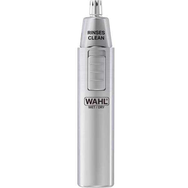 • Designed with stainless steel blades, the Wahl Rinseable Ear + Nose Hair Trimmer is a battery powered personal trimmer that effectively removes hair from your ears, nose and eyebrows. It is the perfect hair removal tool for both men and women.